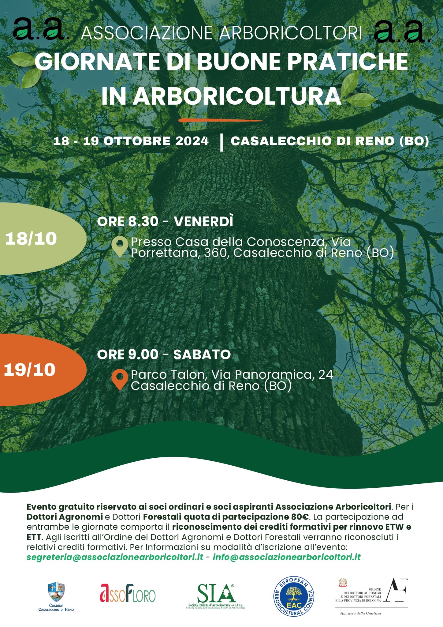 Per avere maggiori informazioni è possibile contattare direttamente la segreteria di A.A. Associazione Arboricoltori all’indirizzo mail Questo indirizzo email è protetto dagli spambots. È necessario abilitare JavaScript per vederlo.