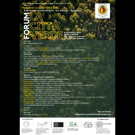Siamo lieti di comunicare il patrocinio della SIA al convegno “Citta Verde - Il potenziale delle foreste urbane: una sfida per il futuro delle città sostenibili” organizzato dal Comune di Bergamo per il prossimo venerdì 15 novembre.