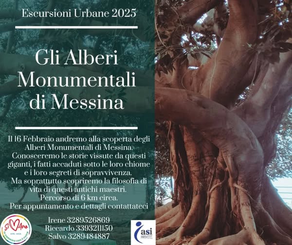 Comunichiamo il patrocinio della SIA all’evento “Gli Alberi Monumentali di Messina”: un’escursione urbana alla scoperta dei 16 alberi monumentali di Messina organizzata dal Socio Riccardo Ciotti per il 16 febbraio.